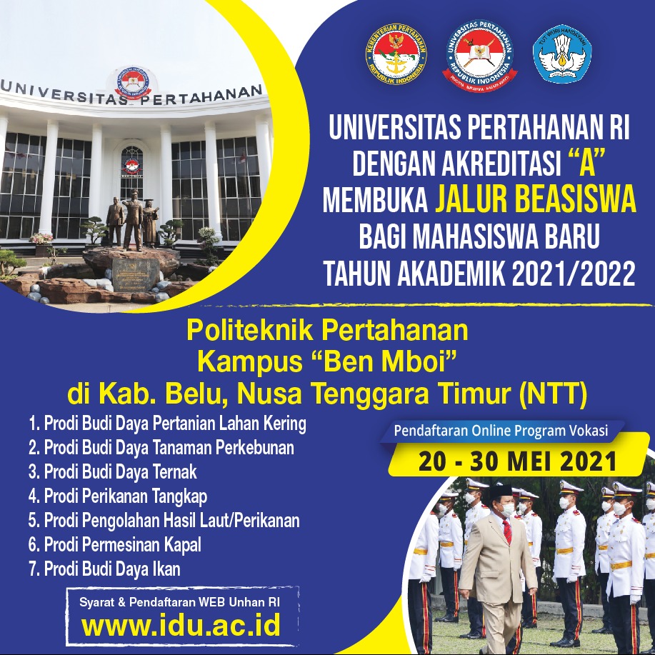 Bagi para lulusan s1, baik masyarakat umum, tni/polri, maupun pns yang ingin melanjutkan studi magister di bidang pertahanan di universitas pertahanan indonesia. Lebih jauh mengenai bagaimana kuliah di unhan, apa saja beasiswa yang diberikan dan berbagai info lainnya seputar unhan teman bisa baca di postingan ini ya. Seluruh pendaftaran program beasiswa unhan dilaksanakan secara online, dengan jadwal sebagi berikut: beasiswa s1 unhan 2020, jadwal penerimaan & Saat ini unhan menurut gubernur od, kembali memberi beasiswa bagi putra putri terbaik bangsa untuk tahun akademik 2021/2022.