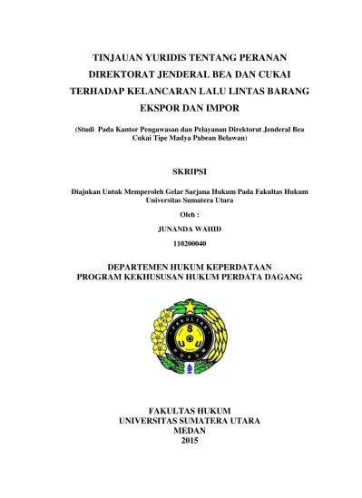 Skripsi ini merupakan penelitian yuridis dan normatif yang lebih menekankan. Dapat menjadi salah satu pedoman bagi para penegak hukum di. "tinjauan yuridis peranan ppns bea dan cukai dalam. Indonesia mengenai tindak pidana yang terjadi di bidang kepabeanan khususnya dalam kasus . "tinjauan yuridis peran ppns bea dan cukai dalam menangani tindak.